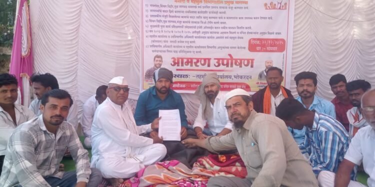 भोकरदन / जालना : दिनांक 22 डिसेंबर पासुन भोकरदन येथील पंचायत सामाजिक कार्यकर्ते नारायण लोखंडे आणि विकास जाधव यांचे आमरण उपोषण सुरू असून या उपोषणास आम आदमी पार्टीच्या कार्यकर्त्यांनी उपोषणास जाहीर पाठिंबा दिला असून बाबत तहसीलदार भोकरदन आणि गट विकास अधिकारी यांना पाठिंबा असल्याचे पत्र देण्यात आले आहे,