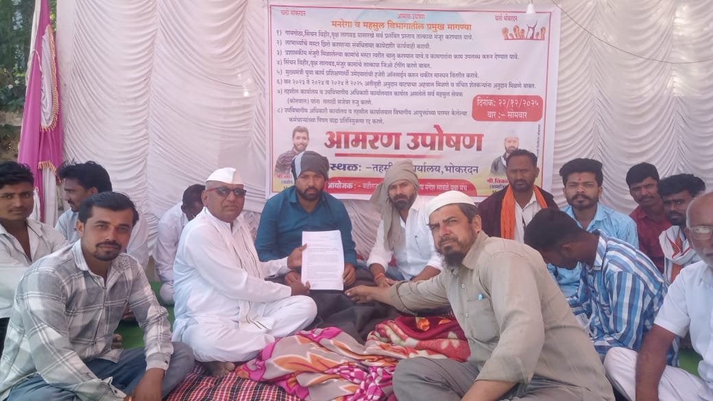 सुदैवाने भोकरदन तालुक्यात अनेक समाजसेवक जनतेसाठी आंदोलन,मोर्चे,उपोषण या ना त्या मार्गाने संघर्ष करताना दिसत आहे . या सर्व संघर्ष योद्धांचे जनतेच्या कामासाठी योगदान पाहता जनतेने यांना सहकार्य करणे व पाठिंबा देणे आवश्यक आहे.कारण ते स्वतःसाठी नाही तर जनतेसाठी शेतकऱ्यांसाठी सतत लढत असतात. समाजसेवकांना आम आदनी पार्टी सतत पाठिंबा देत आलेली आहे. भोकरदन तहसील कार्यालयासमोर सुरू असलेल्या आमरण उपोषणाला व त्यांच्या सर्व मागण्यांना आम आदमी पार्टीचा पाठिंबा असून प्रशासनाने तात्काळ त्यांच्या मागण्या मंजूर कराव्यात पाठिंबा असल्याचे पत्र तहसीलदार भोकरदन आणि बीडिओ पंचायत समिती भोकरदन यांना आम आदमी पार्टीमार्फत देण्यात आलेले आहे. त्यांच्या जीवीताला धोका होऊ नये यासाठी तात्काळ मागण्या मंजूर करून प्रशासनाने त्यांचे उपोषण सोडवावे.यावेळी आम आदमी पार्टी मार्फत जालना जिल्हा सचिव बोरसे गुरुजी जिल्हा उपाध्यक्ष महेजाद खान कार्यकारणी सदस्य भगवान पालकर नारायण सोनी व पार्टीचे कार्यकर्ते उपस्थित होते.