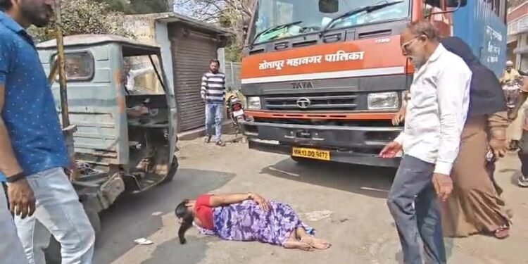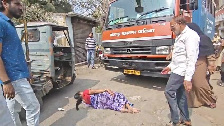 सोलापूर महापालिकेच्या अतिक्रमण प्रतिबंधक विभागाची शहरभर धडक कारवाई सुरू आहे. गुरुवारी बाळीवेस कस्तुरबा मार्केट परिसरात करण्यात आलेल्या अतिक्रमण हटाव कारवाईदरम्यान टपरी चालक व फेरीवाले यांनी थेट महापालिका अधिकाऱ्यांसोबत अरेरावी करत कारवाईला विरोध केला. या वेळी एका दाल-चावल गाडी चालवणाऱ्या महिलेने महापालिकेच्या वाहनासमोरच लोटांगण घालत कारवाई रोखण्याचा प्रयत्न केल्याने परिसरात काही काळ तणाव निर्माण झाला.