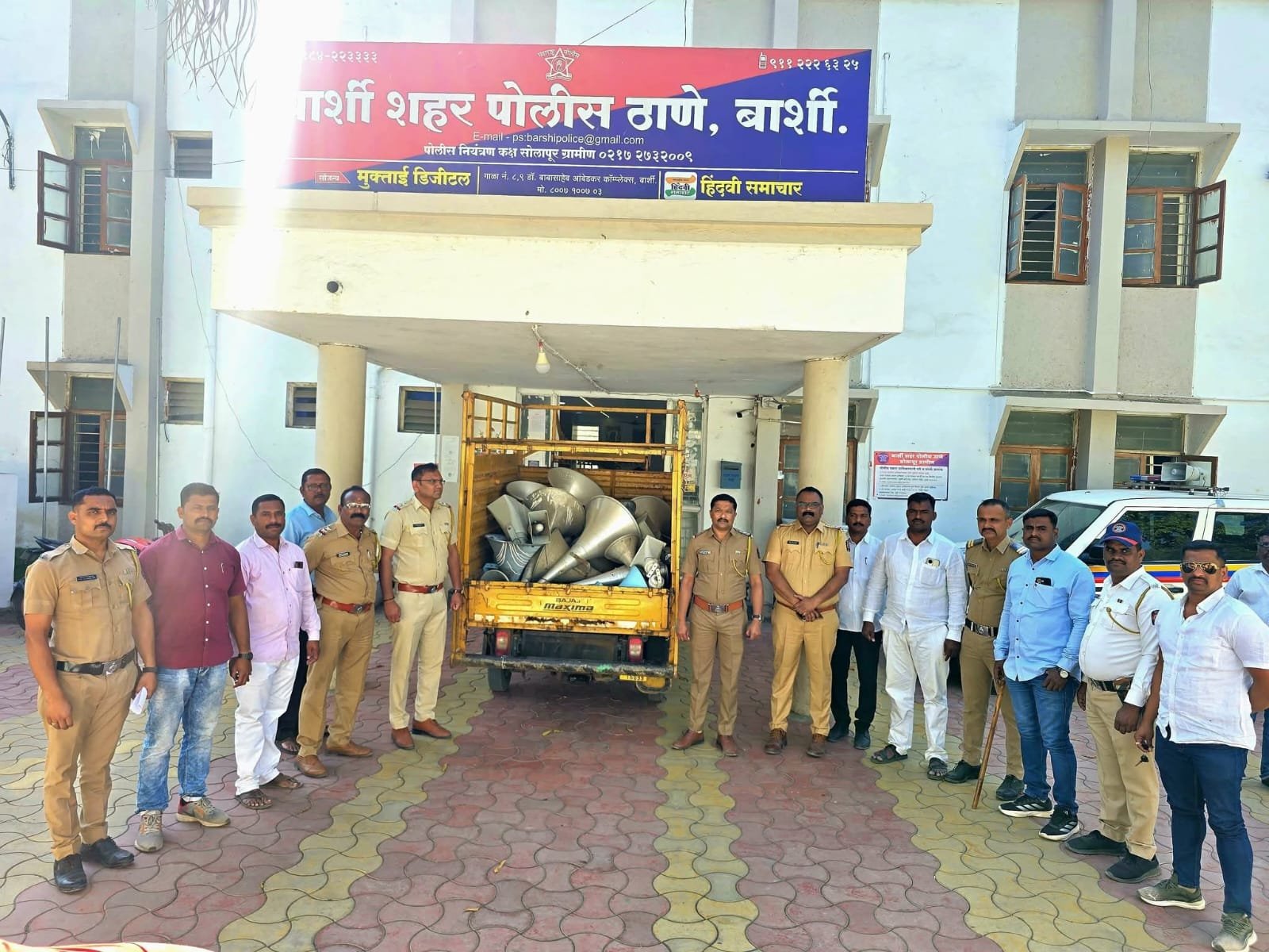 बार्शी – शहर पोलीस ठाण्याच्यावतीने आज शहरात अनधिकृत भोंगे (ध्वनीवर्धक) हटविण्याची विशेष मोहीम राबविण्यात आली. धार्मिक स्थळांवरील ध्वनीप्रदूषणासंदर्भात सर्वोच्च न्यायालयाने जाहीर केलेल्या मार्गदर्शक तत्त्वांच्या अनुषंगाने ही कारवाई करण्यात आली.