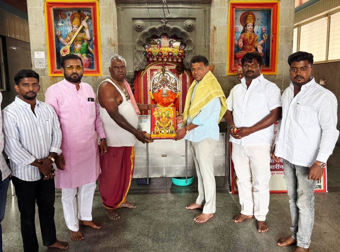 यावेळी भक्त मंडळाच्या वतीने त्यांचा श्री मशरूम गणपतीची प्रतिमा शाल श्रीफळ प्रसाद देऊन मंदिराचे पुजारी श्री संजय पतंगे यांच्या हस्ते त्यांचा सत्कार करण्यात आला.