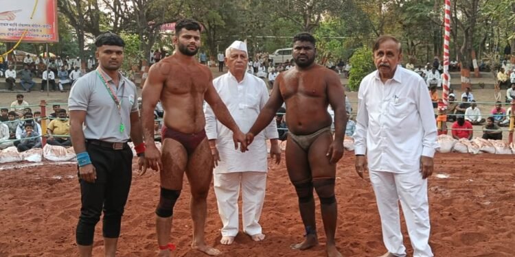 शिवतीर्थ आखाड्यात कुस्ती लावताना जयसिंह मोहिते पाटील व मदनसिंह मोहिते पाटील…
