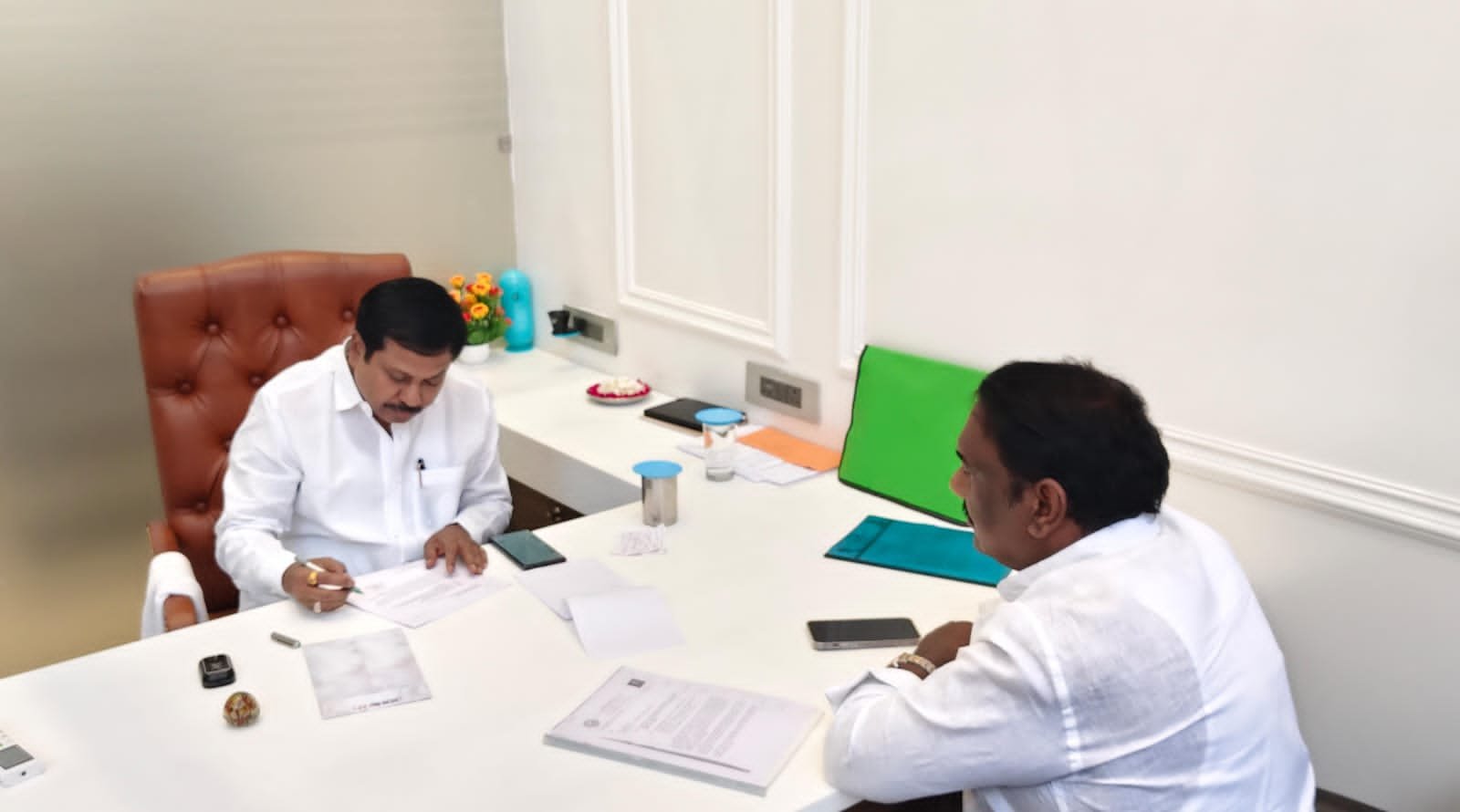 सोलापूर : महाराष्ट्र राज्य विधानसभेचे उपाध्यक्ष अण्णासाहेब बनसोडे यांची राष्ट्रवादी काँग्रेस पार्टीचे प्रदेश उपाध्यक्ष आनंद चंदनशिवे यांनी सदिच्छा भेट घेतली. या भेटीदरम्यान सोलापूर शहरातील विविध प्रलंबित प्रश्नांवर सविस्तर चर्चा करण्यात आली. शहराच्या पायाभूत सुविधा, पाणीपुरवठा, रस्ते विकास तसेच नागरिकांशी संबंधित प्रश्नांवर सकारात्मक संवाद झाला.