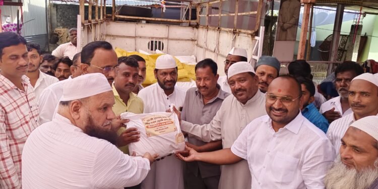 करमाळा- तालुक्यातील आवाटी येथील सीना नदीकाठी असलेल्या पूरग्रस्तांना आज आवाटी येथील हजरत वली चांद पाशा दर्गाह ट्रस्टच्या वतीने किराणा सामानाचे संच वाटण्यात आले पूरग्रस्तांना एक प्रकारे मदतीचा हात म्हणून दर्गाह ट्रस्टने आवाटी गावातील सीना काठी असलेल्या पूरग्रस्तांना जीवनावश्यक वस्तूचे किराणा सामान वाटप केले