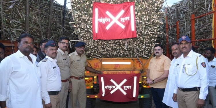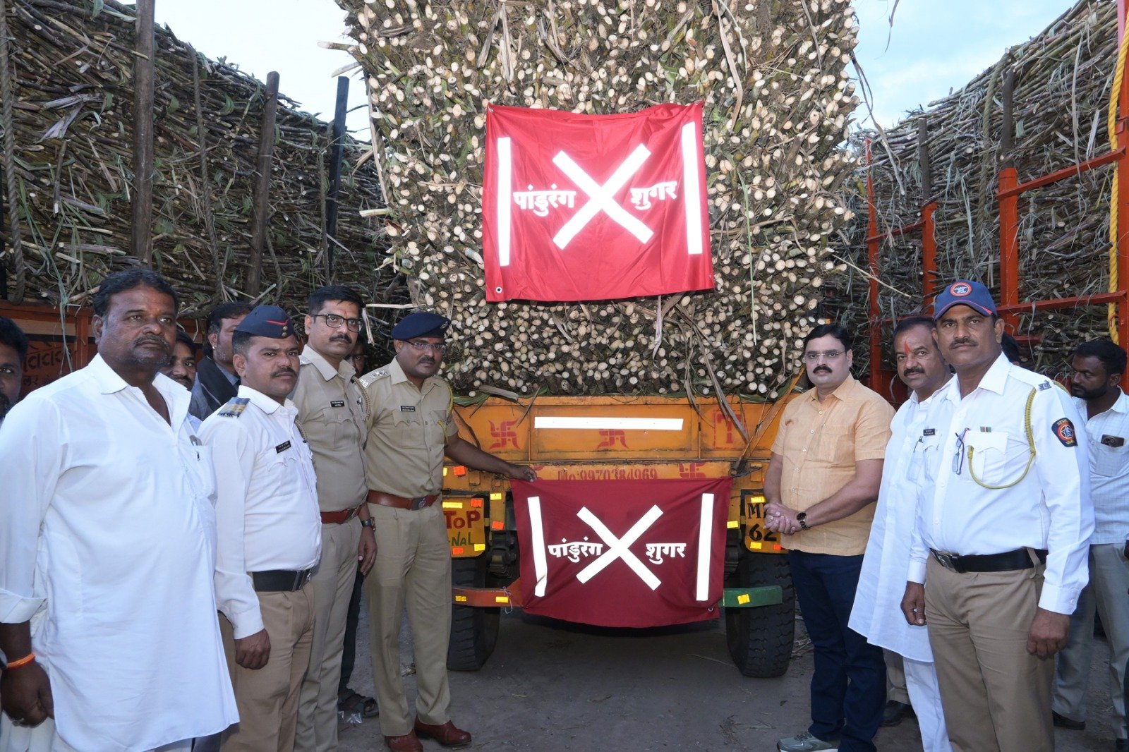 श्रीपूर – श्रीपूर ता . माळशिरस येथिल कर्मयोगी सुधाकरपंत परिचारक पांडुरंग सहकारी साखर कारखान्यास उसाचा पुरवठा होत असलेल्य ट्रक, ट्रॅक्टर, बजाट यावाहनांना अकलूज विभागाचे उप-विभागीय पोलीस अधिकारी संतोष वाळके व अकलूज पोलीस स्टेशनचे पोलीस निरीक्षक नीरज उबाळे यांचे हस्ते व कारखान्याचे संचालक तानाजी वाघमोडे, बाळासो यलमर, .शामराव साळुंखे व कार्यकारी संचालक डॉ. यशवंत कुलकर्णी यांच्या उपस्थितीत रिप्लेक्टर लावण्यात आले .