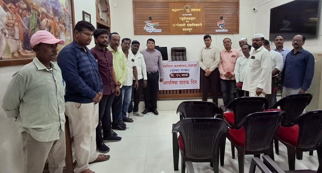 तहसील कार्यालय पंढरपूर येथे १५ मार्च हा जागतिक ग्राहक दिन साजरा करण्यात आला. यावेळी नायब तहसीलदार बालाजी पुदलवाड, पुरवठा निरीक्षक विजय बादल, पुरवठा सहा. उमेश हिंगमिरे, नेताजी ओव्हाळ, ग्राहक पंचायतीचे सह सचिव आझाद आल्लापूरकर, मंडळ अधिकारी, नागरिक तसेच कर्मचारी उपस्थित होते.