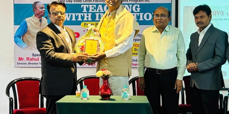 या कार्यक्रमास नामांकित सॉफ्ट स्किल्स प्रशिक्षक आणि वक्ते श्री. राहुल उपाध्ये (डायरेक्टर, भास्कर सॉफ्ट स्किल्स ट्रेनिंग सेंटर, सोलापूर) यांची उपस्थिती लाभली. प्रभावी संवाद कौशल्य, अध्यापन शास्त्रातील सखोल समज आणि गतिमान सादरीकरणासाठी ओळखले जाणारे श्री. उपाध्ये यांनी चिंतनशील चर्चा, व्यावहारिक मार्गदर्शन आणि महाराष्ट्रातील शिक्षक–विद्यार्थ्यांच्या दैनंदिन अनुभवांवर आधारित उदाहरणांद्वारे सत्र समृद्ध केले.