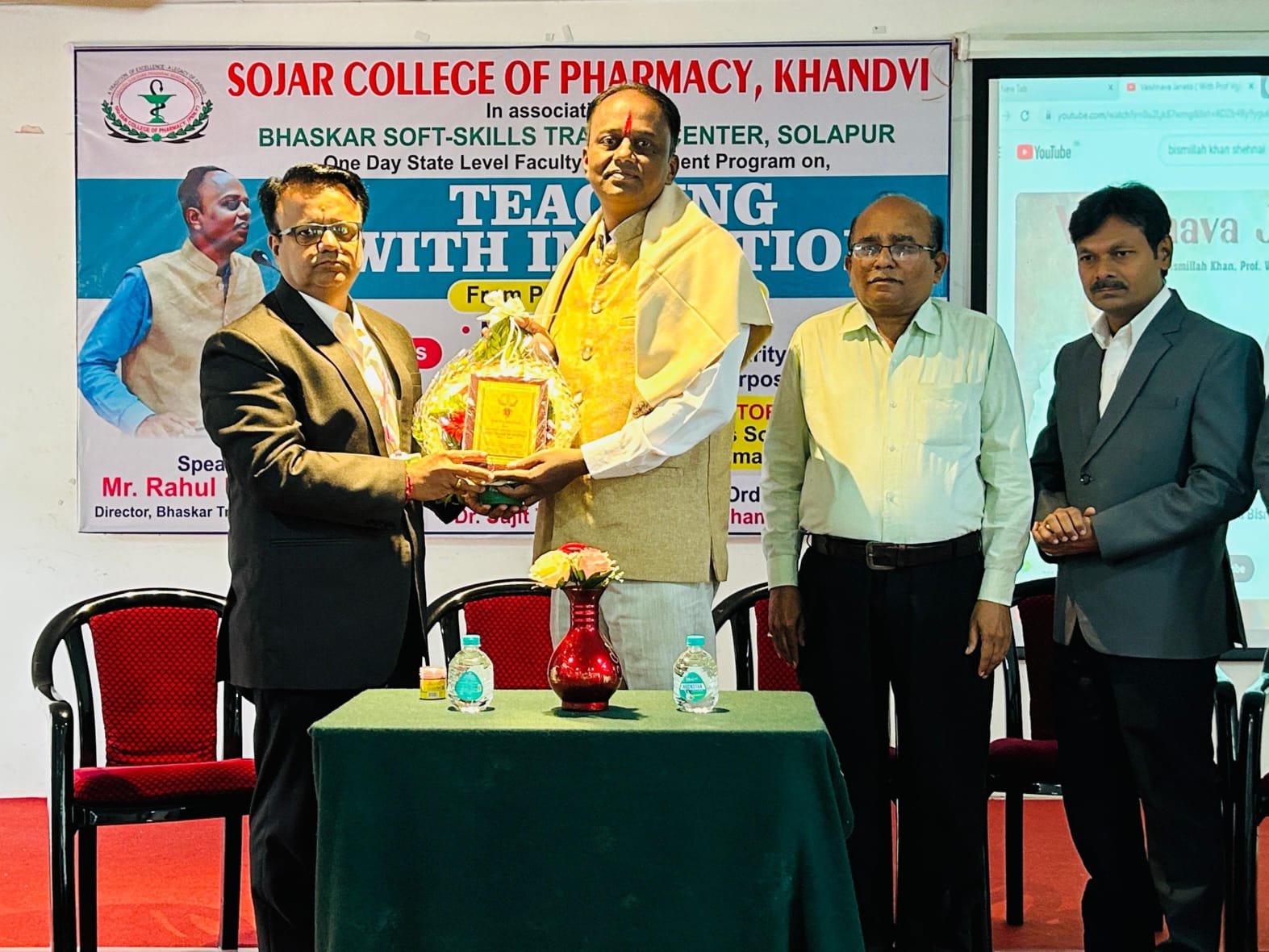 बार्शी – सोजर कॉलेज ऑफ फार्मसी, खांडवी टिचिंग विथ इंटेन्शन” या विषयावर प्रभावी फॅकल्टी डेव्हलपमेंट प्रोग्राम यशस्वीपणे आयोजित करण्यात आला. या कार्यक्रमाचा उद्देश आधुनिक शिक्षकांच्या अध्यापन पद्धतींमध्ये सकारात्मक बदल घडवून आणणे, पारंपरिक पद्धतींपलीकडे जाऊन उद्देशपूर्ण व विद्यार्थी-केंद्रित शिक्षण स्वीकारणे असा होता.