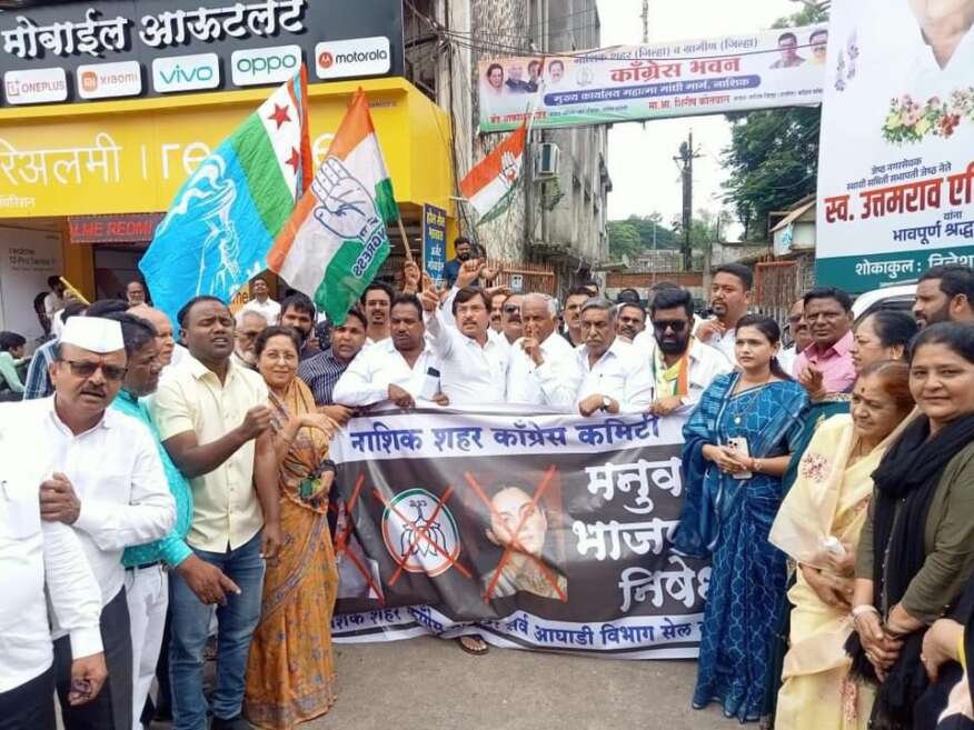 त्यांना वेळीच आवर घातले नाही तर काँग्रेस पक्षाचा कार्यकर्ता रस्त्यावर उतरून आंदोलन करेल, असे मत आंदोलनाच्या वेळी नाशिक जिल्हा काँग्रेस कमिटीचे अध्यक्ष शिरीष कोतवाल यांनी केले. माजी सभागृह नेते राजेंद्र बागुल यांनी भाजपवर टीका करत मनुवादी भाजपाचा निषेध नोंदविला याप्रसंगी राहुल गांधी जिंदाबाद, काँग्रेस पक्ष जिंदाबाद, मनवादी भाजपाचा धिक्कार असो, अशा घोषणांनी काँग्रेस भवन परिषद दुमदुमून टाकला. या आंदोलनाच्या वेळी अनुराग ठाकूर व कंगना राणावत यांच्या फोटोला चप्पल मारून कार्यकर्त्यांनी निषेध नोंदवला