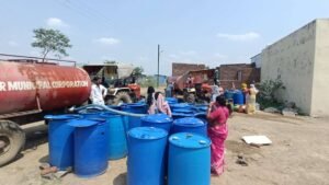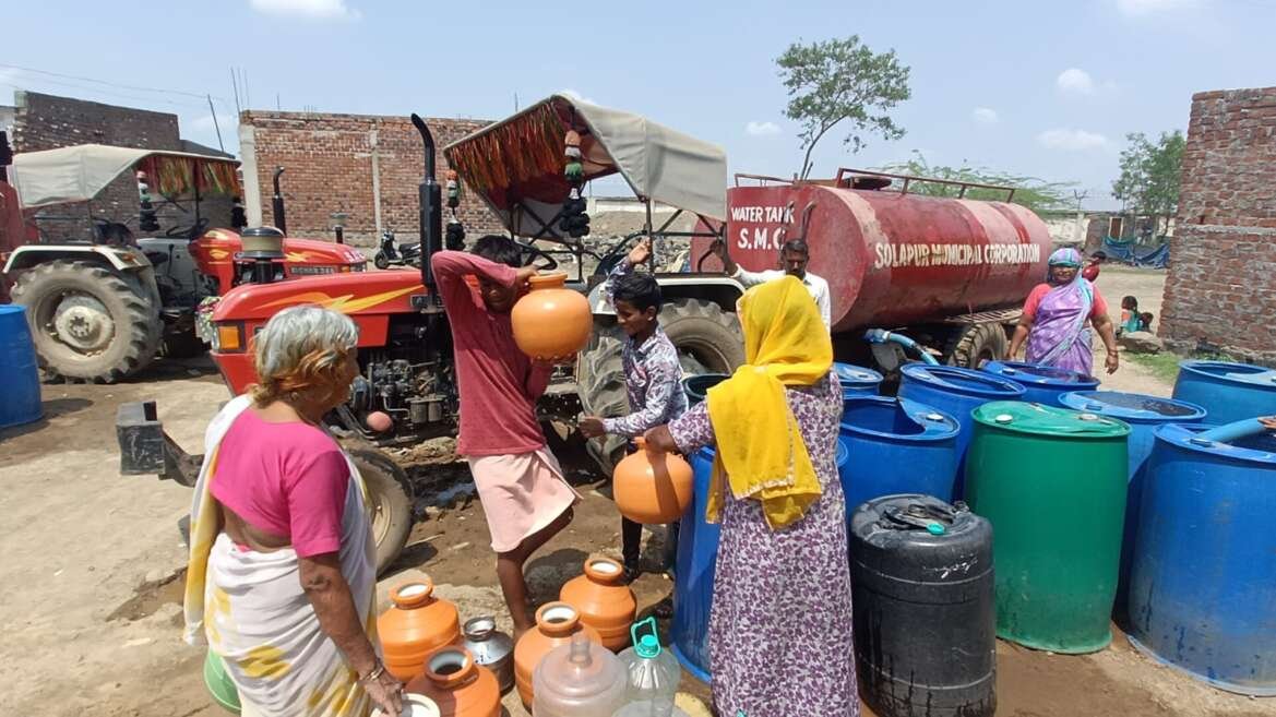 सोलापूर शहरातील हद्दवाढ भागात पाण्याच्या एका थेंबासाठी नागरिकांची भटकंती सुरू आहे. महापालिकेच्या वतीने या भागामध्ये पाच दिवसाआड दोन टँकरने पाणीपुरवठा केला जातो. पाण्याचे नळ या ठिकाणी नसल्याने नागरिक पाण्याच्या टँकर भरवशी अवलंबून आहेत. त्यादिवशी टँकर तो त्या दिवशी घरातील सर्व सदस्य पाणी भरण्यात व्यस्त असतात. पिण्याच्या पाण्याचे एन उन्हाळ्यात योग्य नियोजन नसल्याने नागरिकांना पायपीट करावी लागत आहे. खास करून महिलांना पाण्यासाठी वन वन फिरावे लागत आहे. दरम्यान शहराच्या हद्दवाढ भागातील विमानतळ परिसरात असणाऱ्या नागनाथ नगर परिसरात हीच अवस्था पहावयास मिळत आहे.
