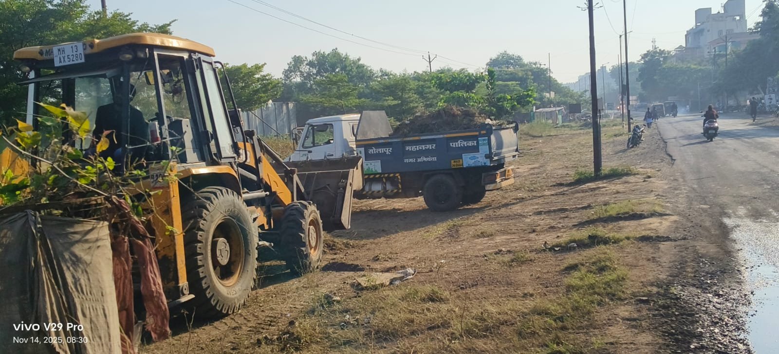 “सोलापूर सुंदर सोलापूर” मोहिमेअंतर्गत सोलापूर महानगरपालिकेचे आयुक्त डॉ. सचिन ओम्बासे यांच्या आदेशानुसार व अतिरिक्त आयुक्त विणा पवार यांच्या मार्गदर्शनाखाली आज शहरातील अनेक भागांत रस्त्यावर पडलेला आजोरा व बांधकाम अवशेष हटविण्याची मोठी मोहीम राबविण्यात आली.
