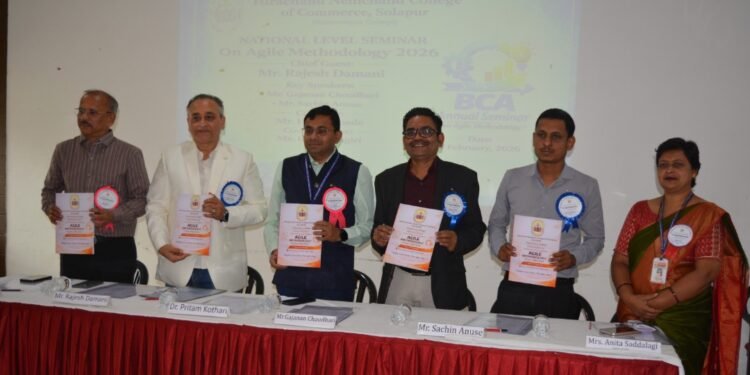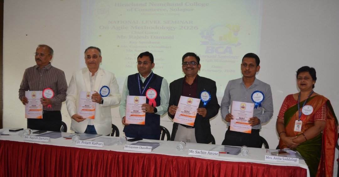 एस.ए.पी.डी. जैन पाठशाळा संचलित हिराचंद नेमचंद कॉलेज ऑफ कॉमर्सच्या व्यवस्थापन विभागांतर्गत बी.सी.ए. तर्फे आयोजित ‘अजाईल मेथडॉलॉजी’ या एकदिवसीय राष्ट्रीय चर्चासत्राच्या उद्घाटनप्रसंगी दमाणी बोलत होते.