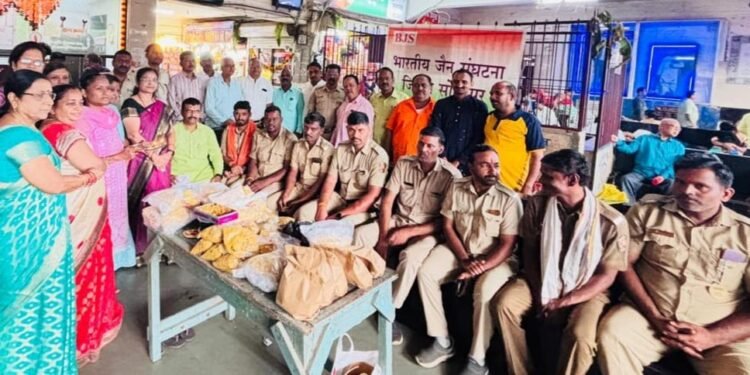 सोलापूर :- भारतीय जैन संघटना व राष्ट्रीय कर्मचारी सेना सोलापूर विभाग यांच्या वतीने सोलापूर बस स्थानकातील बस चालक ,वाहक व प्रवासी तसेच कर्मचाऱ्यांना जैन संघटनेच्या महिला पदाधिकाऱ्यांनी औक्षण करून फराळ देऊन भाऊबीज साजरी करण्यात आली. या कार्यक्रमास संघटनेचे राज्य कार्यकारणी सदस्य श्याम पाटील, विभागीय उपाध्यक्ष अभिनंदन विभूते, विभागीय अध्यक्ष माया पाटील यांची प्रमुख उपस्थितीत संपन्न झाला.प्रारंभी चालक वाहक व प्रवासी यांना औक्षण करण्यात आले.यावळी आपल्या मनोगतातून अभिनंदन विभूते यांनी भारतीय जैन संघटनेच्या कार्याबद्दल सर्व माहिती दिली. प्रत्येक सणाच्या वेळी चालक वाहकांनी आपले घरदार, सण आणि उत्सव सोडून प्रवाशांच्या सेवा करण्यामध्ये मग्न असतात म्हणून या लोकांच्या समावेत भाऊबीज करण्याचा आनंद वेगळाच अनुभव देऊन जातो असे मत संघटनेचे श्याम पाटील यांनी व्यक्त केले.
