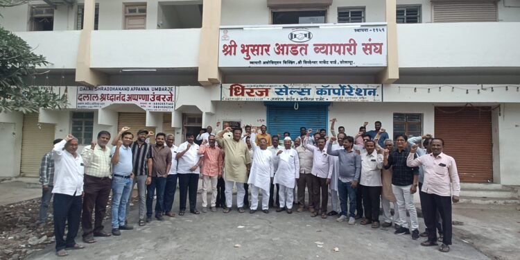 सोलापूर – बाजार समिती सेस रद्द करा, या प्रमुख मागण्यासह इतर ७ मागण्यांसाठी भुसार आडत व्यापारी संघाच्या वतीने आज शुक्रवार (दि.५) डिसेंबर रोजी एक दिवसाचा लाक्षणिक व्यापार बंद पुकारण्यात आला होता. महाराष्ट्र राज्य व्यापारी कृती समितीतर्फे महाराष्ट्रातील कृषी उत्पन्न बाजार समिती संदर्भातील समस्या बाबत हा बंद पुकारला असल्याचे सांगण्यात आले.