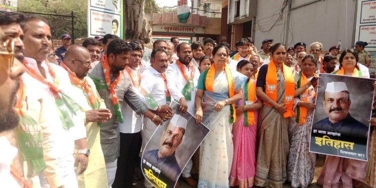 सोलापूर : काँग्रेसचे प्रदेशाध्यक्ष हर्षवर्धन सपकाळ यांच्या आक्षेपार्ह वक्तव्याविरोधात शहर भारतीय जनता पक्षाच्यावतीने रविवारी काँग्रेस भवनासमोर आंदोलन करण्यात आले. यावेळी सपकाळ यांच्या प्रतिमेला जोडेमार करून वक्तव्याचा निषेध करण्यात आला. शहराध्यक्ष रोहिणी तडवळकर यांच्या नेतृत्वाखाली झालेल्या आंदोलनात पदाधिकारी, नगरसेवक व कार्यकर्ते सहभागी झाले होते.