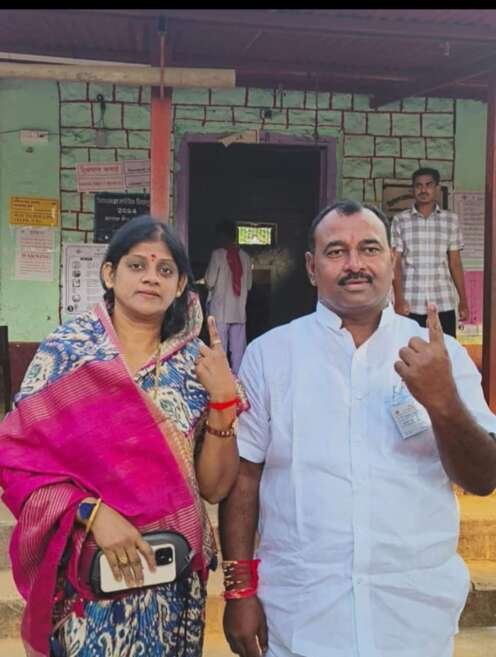 पंढरपूर विधानसभा मतदार संघाचे भाजपाचे उमेदवार समाधान आवताडे व त्यांच्या पत्नी सौ.अंजली आवताडे यांनी बजावला मतदानाचा हक्क .मंगळवेढा येथील इंग्लीश स्कुल प्रशालेत केले मतदान.