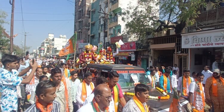 . प्रभाग १३ मधील चारही भाजप उमेदवार मोठ्या मताधिक्याने विजयी होतील, असा विश्वासही त्यांनी व्यक्त केला. हा भव्य रोडशो अशोक चौक, बोल्ली मंगलकार्यालय, साईबाबा चौक, मस्ताना हॉटेल, खड्डा तालीम, आम्रपाली चौक, वालचंद कॉलेज परिसर यासह प्रभागातील विविध भागांतून काढण्यात आला. रस्त्यांच्या दुतर्फा नागरिकांनी गर्दी करून उमेदवारांचे स्वागत केले. महिलांच्या हातातील भगवे झेंडे, कार्यकर्त्यांचा जल्लोष आणि घोषणांनी संपूर्ण परिसर उत्साहाने दुमदुमून गेला. प्रचाराच्या शेवटच्या दिवशी करण्यात आलेल्या या भव्य शक्तीप्रदर्शनाने भाजपाच्या प्रचाराला निर्णायक उंची मिळाली असून मतदारांमध्ये उत्साहाचे वातावरण निर्माण झाले आहे.