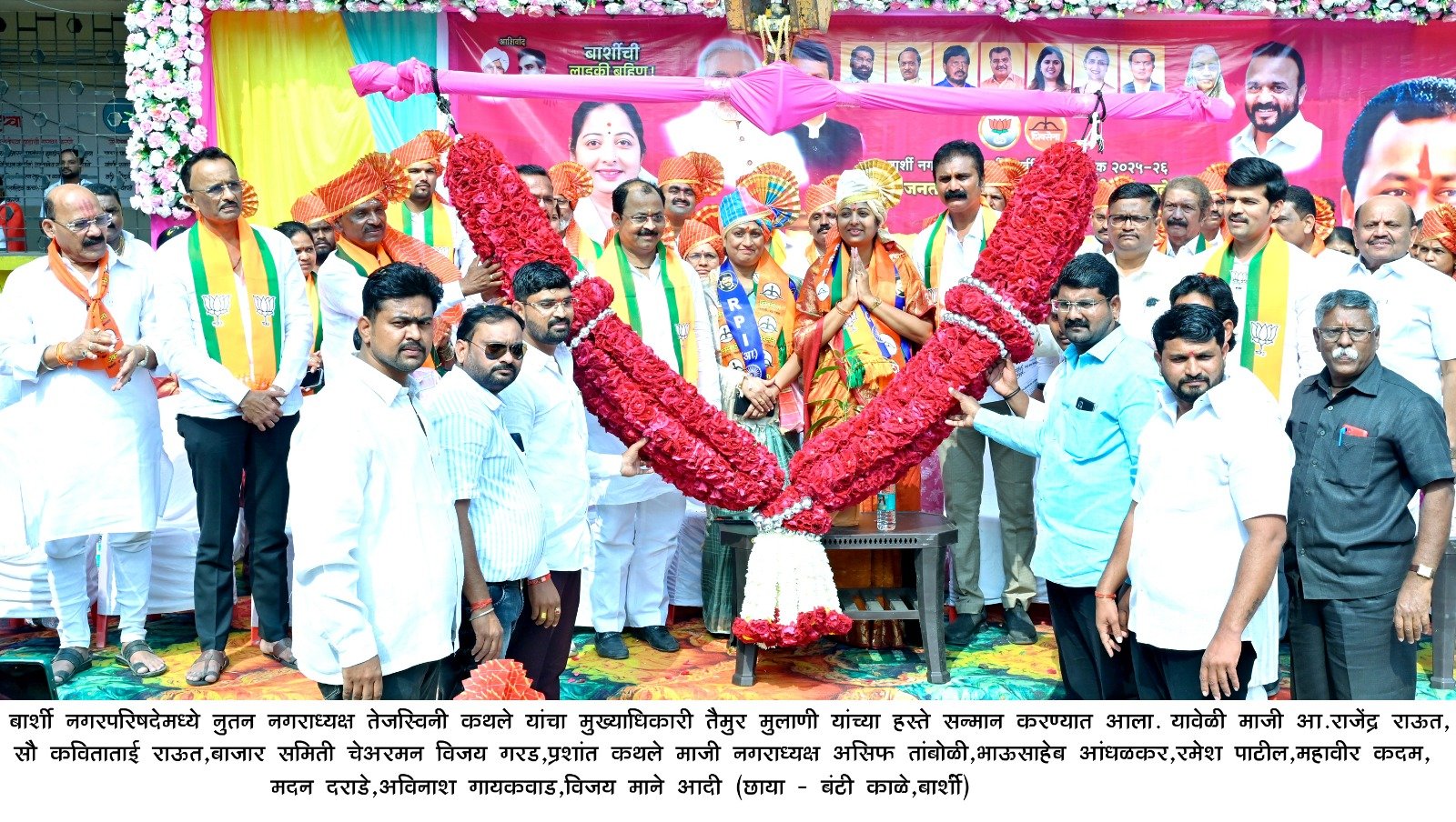 बार्शी – नगरपरिषदेच्या भाजपच्या नूतन नगराध्यक्षा तेजस्विनी कथले यांनी आज जोरदार शक्ती प्रदर्शन करत मिरवणुकीद्वारे वाजत गाजत जाऊन नगरपालिका मुख्यालयात नगराध्यक्ष पदाचा पदभार स्वीकारला.