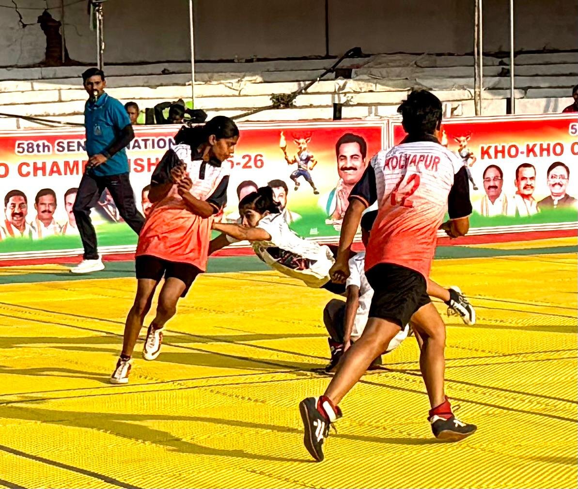 काझीपेठ : येथील रेल्वे ग्राउंडवर सुरू असलेल्या ५८ व्या वरिष्ठ राष्ट्रीय खो-खो अजिंक्यपद स्पर्धेने पहिल्याच दिवसापासून प्रेक्षकांची मने जिंकली आहेत. तेलंगणा खो-खो असोसिएशनच्या आयोजनाखाली देशभरातील बलाढ्य संघांनी मैदानात उतरून कौशल्य, वेग, चपळाई आणि रणनीतीचा अफलातून संगम सादर केला. प्रारंभीच्या सामन्यांतच महाराष्ट्र, कोल्हापूर, रेल्वे आणि छत्तीसगड संघांनी जोरदार विजय मिळवत प्रतिस्पर्ध्यांची दाणादाण केली आणि दिमाखात उपउपांत्यपूर्व फेरीत पुढील फेरीत प्रवेश निश्चित केला.