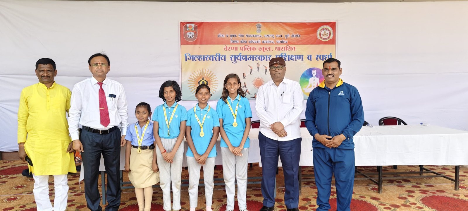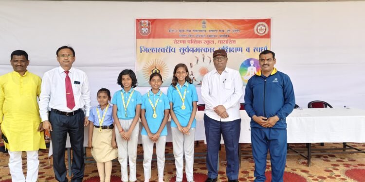 धाराशिव – तेरणा पब्लिक स्कूल धाराशिव येथे आयोजित करण्यात आलेल्या क्रीडा व युवक सेवा संचालनालय, पुणे अंतर्गत जिल्हा क्रीडा अधिकारी धाराशिव जिल्हास्तरीय सूर्यनमस्कार प्रशिक्षण व स्पर्धा आयोजित करण्यात आली होती. या स्पर्धेमध्ये पोदार इंटरनॅशनल स्कूल धाराशिवचे विद्यार्थी देखील सहभागी झाले होते. यामध्ये स्कूलच्या चार विद्यार्थिनींनी चमकदार कामगिरी करत विशेष प्राविण्य प्राप्त केले.