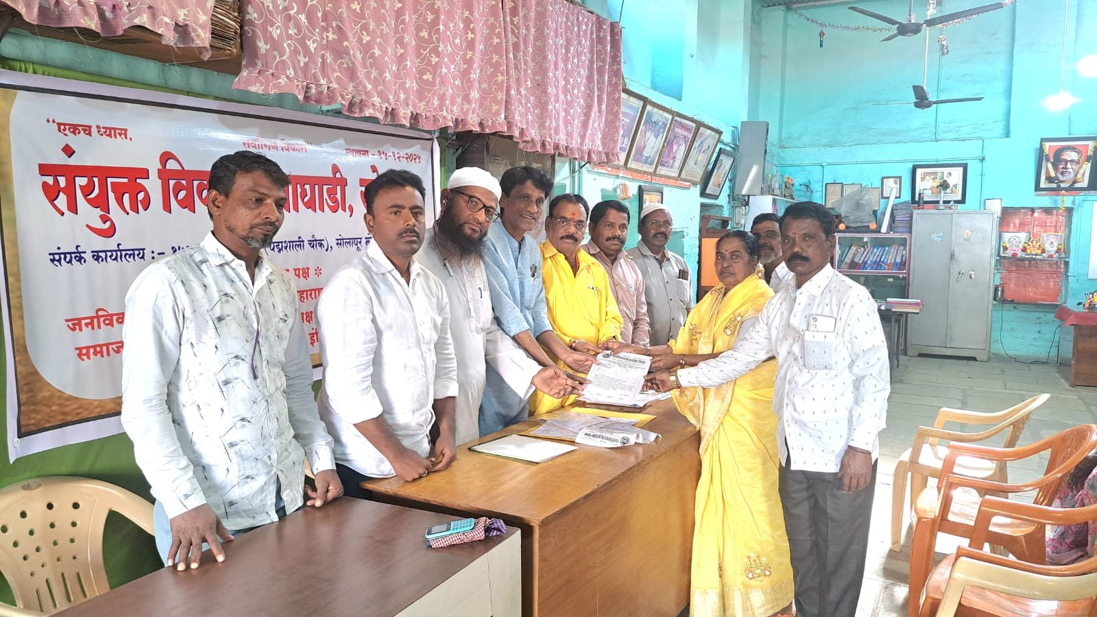 सदर प्रसंगी वरील मान्यवरांसह रेखा अडकी, गुलाब लालकोट, इकबाल पेरमपल्ली , लक्ष्मीबाई ईप्पा, विठ्ठल कुऱ्हाडकर, सुवर्णा चन्मय, सुनीता चव्हाण, पद्मा मॅकल, श्रीनिवास बोगा, गुरुनाथ कोळी, लक्ष्मीबाई मालपुरी, लक्ष्मी रच्चा, रामबाई माटेटी, लक्ष्मी येमुल, कस्तुरीबाई गायकवाड, प्रसाद जगताप, पप्पू शेख, गोवर्धन मुदगल पार्वती बरबडे, किरण क्षीरसागर, सिद्राम ढोबळे यांच्यासह इच्छुक उमेदवार व सर्व घटक पक्षाचे उमेदवार कार्यकर्ते व पदाधिकारी मोठ्या संख्येने उपस्थित होते.