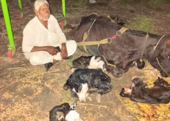 Read moreवाशी - तालुक्यातील सटवाईवाडी येथील प्रदीप फरताडे यांच्या गाईने चक्क चार वासरांना जन्म दिल्याची दुर्मीळ आणि आनंददायी घटना घडली आहे....