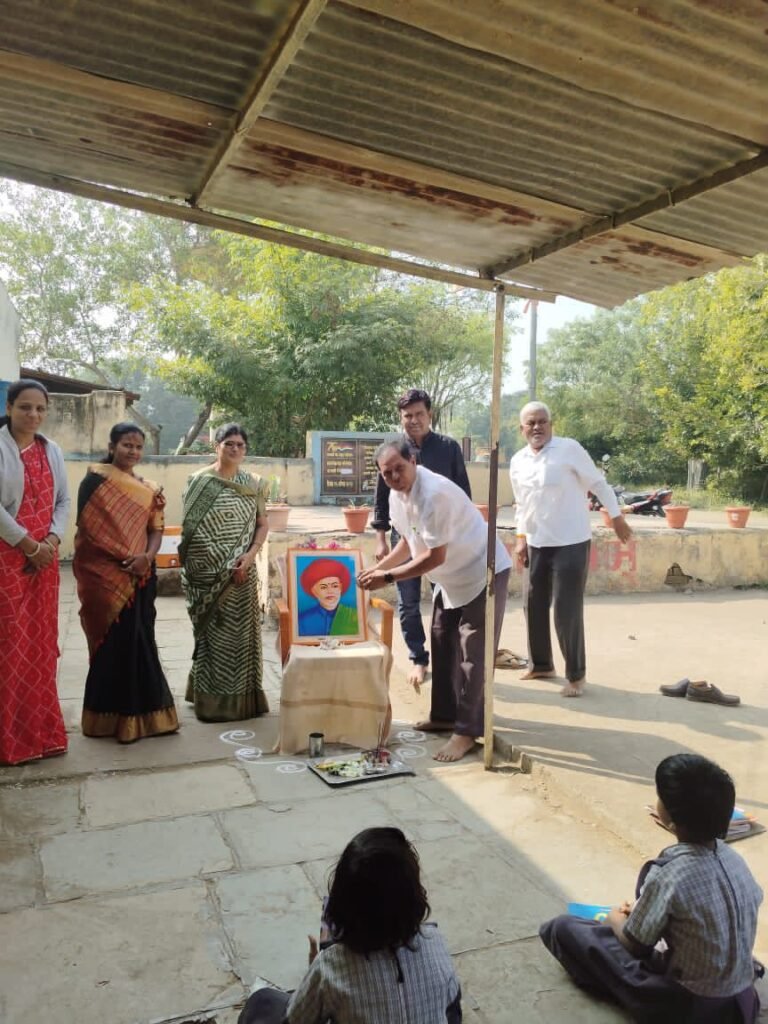 यावेळी प्रतिमेचे पूजन मुख्याध्यापक सो ने एम व्ही मुख्याध्यापक व जाणीव संघटनेचे जिल्हाध्यक्ष रामभाऊ लगाडे यांच्या हस्ते प्रतिमेची पूजा केली यानंतर प्रस्ताविक एम व्ही पवार यांनी केले प्रमुख मार्गदर्शक रामभाऊ लगडे यांनी महात्मा ज्योतिराव फुले यांच्या कार्यावर प्रकाश टाकला.