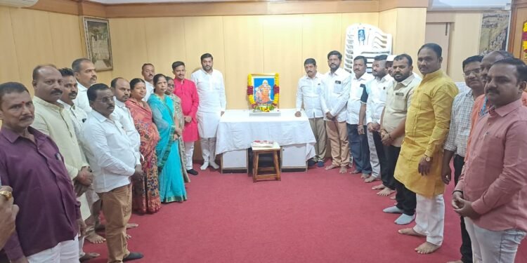 सोलापूर : महानगरपालिकेच्या वतीने थोर संत गाडगेबाबा यांच्या जयंती निमित्त कौन्सिल हॉल येथील महापौर यांच्या कार्यालयात थोर संत गाडगेबाबा यांच्या प्रतिमेस महापौर विनायक कोंड्याल यांच्या हस्ते पुष्पहार अर्पण करून अभिवादन करण्यात आले.