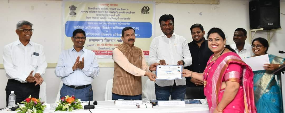 छत्रपती संभाजीनगर, 21 जून (हिं.स.) : येथील महाराष्ट्र उद्योजकता विकास केंद्रातर्फे ३०० महिलांना हिमरू शाल निर्मितीचे प्रशिक्षण देण्यात आले. या महिलांना जिल्हाधिकारी दिलीप स्वामी यांच्या हस्ते प्रमाणपत्र वितरण करण्यात आले. प्रशिक्षित महिलांनी यशस्वी उद्योजक व्हावे, अशा शब्दात जिल्हाधिकारी स्वामी यांनी महिलांना प्रोत्साहन दिले.