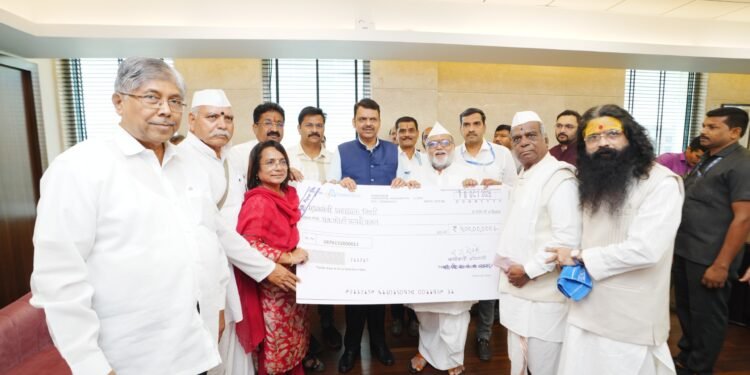या आवाहनास प्रतिसाद देत तसेच सामाजिक उत्तरदायित्व व मानवतावादी भूमिकेतून श्री विठ्ठल-रुक्मिणी मंदिर समितीने शासनाची मंजुरी घेऊन मुख्यमंत्री सहायता निधीस एक कोटी रुपयाच्या मदतीचा धनादेश दिनांक १४ ऑक्टोबर रोजी मंत्रालय येथे मुख्यमंत्री देवेंद्र फडणवीस यांच्याकडे जमा केल्याची माहिती मंदिर समितीचे सह अध्यक्ष गहिनीनाथ महाराज औसेकर यांनी दिली.