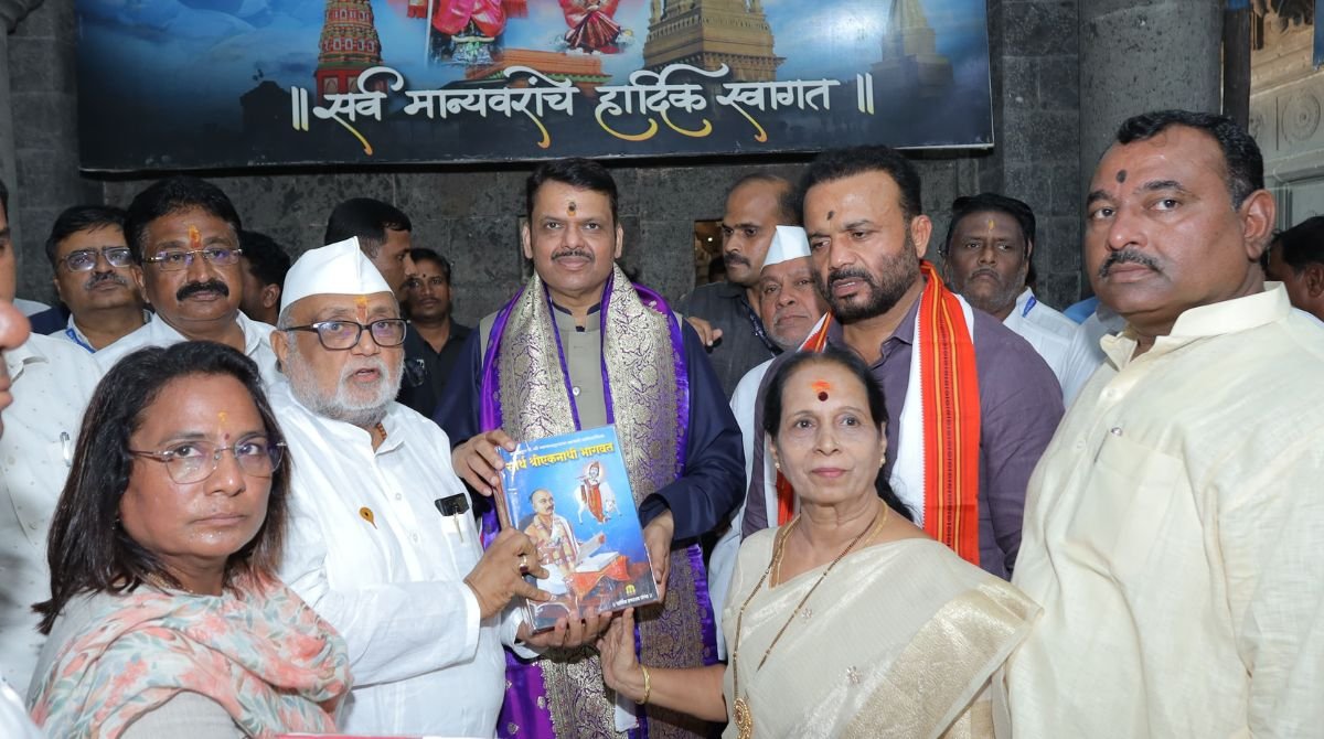 या धार्मिक कार्यक्रमात मुख्यमंत्री फडणवीस यांचा सत्कार मंदिर समितीचे सहअध्यक्ष गहिनीनाथ महाराज औसेकर यांच्या हस्ते करण्यात आला. त्यांना शाल आणि विठ्ठल-रुक्मिणीची मूर्ती भेट म्हणून देण्यात आली.