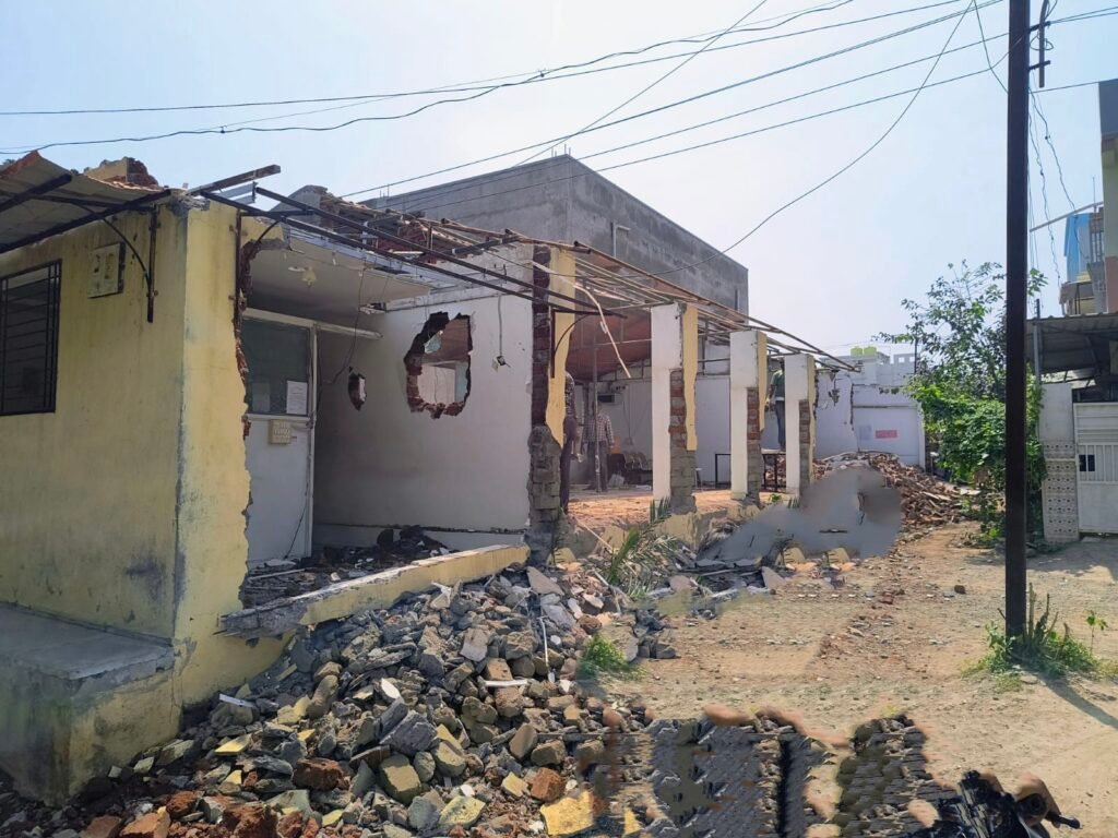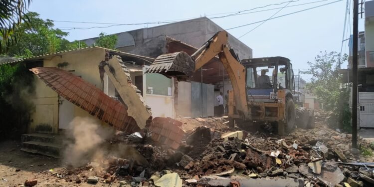 सोलापूर : मजरेवाडी येथील आपना नगर येथे असलेल्या नवजीवन इंग्लिश मीडियम स्कूलचे अतिक्रमित दोन वर्ग, एक पत्रा शेड रूम आणि शाळेचे कार्यालय अखेर आज जेसीबीने पाडकामाची कारवाई महापालिकेकडून करण्यात आली. मोठ्या पोलीस बंदोबस्तात जेसीबीच्या साह्याने महानगरपालिकेच्या बांधकाम, नगररचना व अतिक्रमण प्रतिबंधक विभागाकडून मोठ्या पोलीस बंदोबस्तात ही कारवाई करण्यात आली. या बांधकामानंतर अखेर तो रस्ता अतिक्रमणमुक्त झाला.