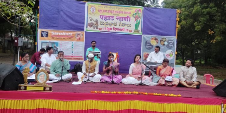 सोलापूर – सुरवरम प्रताप रेड्डी तेलुगु विश्वविद्यालय मंडली व्यंकटी कृष्णाराव हैदराबाद २०२५ उत्कृष्ट ग्रंथालय पुरस्कार प्राप्त तेलुगु भाषा अभिवृद्धी सार्वजनिक ग्रंथालयम मार्फत मार्कंडेय उद्यानात पहाट गाण्याचे आयोजन करण्यात आले.