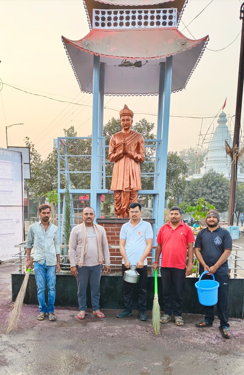 याची दखल घेत संपूर्ण परिसर स्वच्छ करण्यात आला तसेच पाण्याने श्री संत दामाजी महाराजांच्या पुतळ्याची स्वच्छता करून परिसर प्रसन्न करण्यात आला.