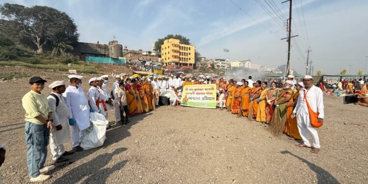 पंढरपूर – ज्ञानेश्वर माऊली वारकरी संप्रदाय गोवा यांचे वतीने रविवारी (दि. २१) रोजी पंढरपूर येथील क्षेत्र चंद्रभागा तिरी स्वच्छता मोहीम राबवली. यावेळी महर्षी वाल्मीकी संघटना पंढरपूरचे अध्यक्ष तसेच आदिवासी कल्याण समितीचे सर्वेसर्वा गणेश अंकुशराव हे उपस्थित होते. त्यांनीवारकरी संस्थेचे अध्यक्ष देवानंद नाईक यांचा पुष्पगुच्छ देऊन सत्कार केला व त्यांच्या कार्याचे भरभरून कौतुक करत इथे या मंडळींना कोणतीही अडचण आली तर आम्ही ती दूर करू व हवं ते सहकार्य करु असं अभिवचन दिलं.