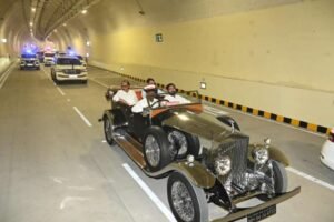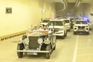 विंटेज कारमधून CM शिंदे आणि दोन्ही उपमुख्यमंत्र्यांची कोस्टल रोडच्या टनेलमधून सफर