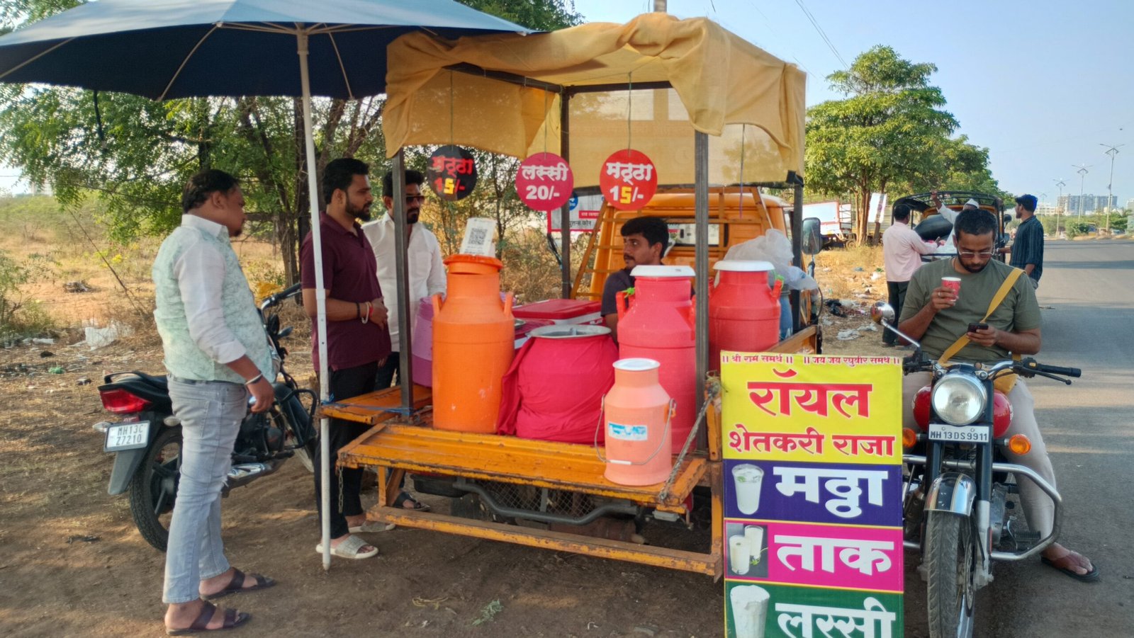 रस्त्याच्या कडेला असलेल्या झाडांच्या सावलीत अनेक विक्रेते थंड पेयांचे स्टॉल लावून बसले असून प्रवासी व नागरिक या पारंपरिक पेयांचा आस्वाद घेत उन्हापासून दिलासा मिळवत आहेत. विशेषतः दुचाकीस्वार व बाहेरून येणारे नागरिक या ठिकाणी थांबून ताक व मठ्ठा पिणे पसंत करत आहेत.