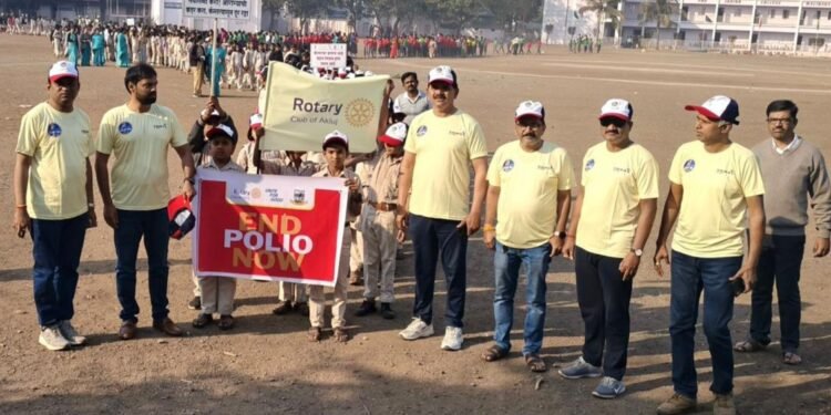 श्रीपूर – माळीनगर (ता. माळशिरस) रोटरी परिवार अकलूजच्या संयुक्त विद्यमाने शनिवार दि. १४ फेब्रुवारी रोजी मॉडेल मल्टीपर्पज हायस्कूल ग्राउंड, माळीनगर येथे “रोटरी रन आणि पोलिओ जनजागृती रॅली” उत्साहपूर्ण व शिस्तबद्ध वातावरणात यशस्वीरीत्या पार पडली. पोलिओ निर्मूलन आणि कॅन्सर जनजागृती या सामाजिकदृष्ट्या अत्यंत महत्त्वाच्या विषयांवर जनप्रबोधन करण्यासाठी या उपक्रमाचे आयोजन करण्यात आले होते.