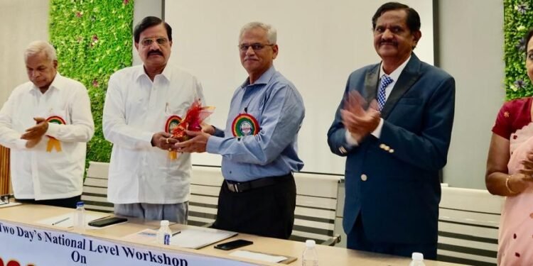 सोलापूर : पुण्यश्लोक अहिल्यादेवी होळकर सोलापूर विद्यापीठ, सोलापूर आणि दक्षिण सोलापूर तालुका शिक्षण मंडळ संचलित व्ही. जी. शिवदारे कॉलेज ऑफ आर्ट्स, कॉमर्स अँड सायन्स, सोलापूर येथील आर्ट्स व कॉमर्स विभागांच्या संयुक्त विद्यमाने आयोजित ‘Skills for Success in the Digital Age’ या विषयावरील दोन दिवसीय राष्ट्रीय कार्यशाळेचा समारोप शुक्रवार, दि. ३० जानेवारी २०२६ रोजी महाविद्यालयामध्ये पार पडला.
