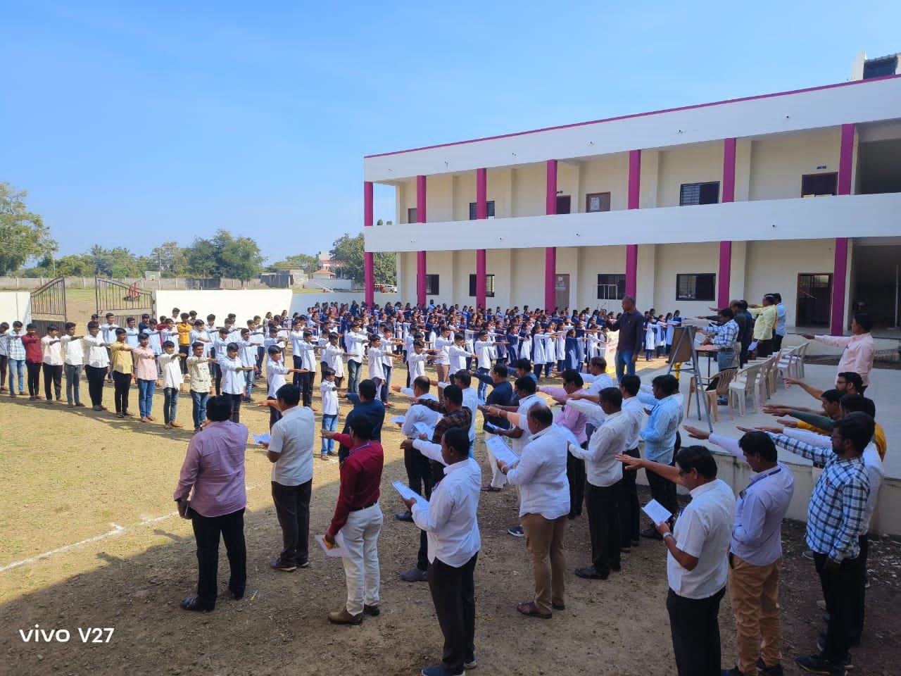 विधान दिनाचे औचित्य साधून घेण्यात आलेल्या कार्यक्रमात वरिष्ठ विभाग एन.एस.एस व ज्युनिअर विभाग यांच्या संयुक्त विद्यमाने संविधान उद्देशिकेचे सामूहिक वाचन करण्यात आले. प्राचार्य डॉ .ए बी कदम सरांनी आपल्या अध्यक्षीय भाषणातून संविधानाचे महत्त्व लोकशाही ,राष्ट्रभक्ती याविषयी जनजागृती होणे गरजेचे आहे असे मत व्यक्त केले .