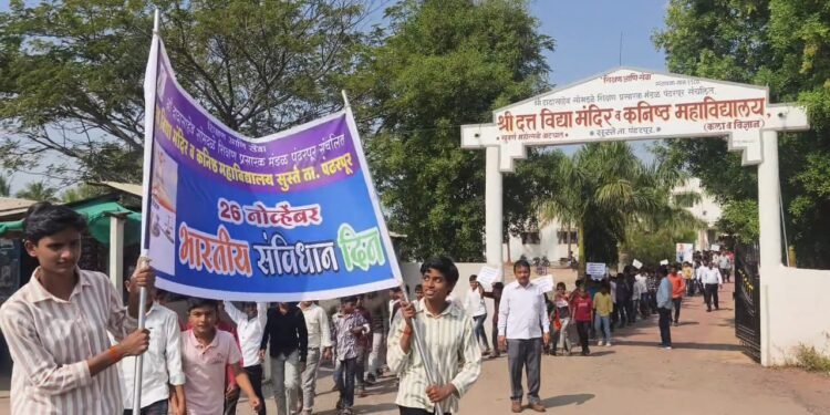 सुस्ते – श्री दादासाहेब सोमदळे शिक्षण प्रसारक मंडळ, पंढरपूर संचलित, सुस्ते येथील श्री दत्त विद्या मंदिर व कनिष्ठ महाविद्यालयात 26 नोव्हेंबर रोजी संविधान दिन मोठ्या साजरा करण्यात आला.