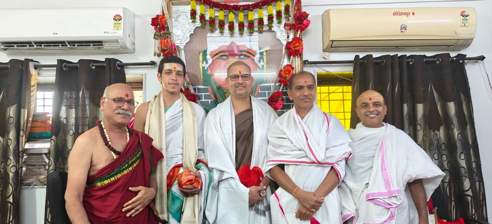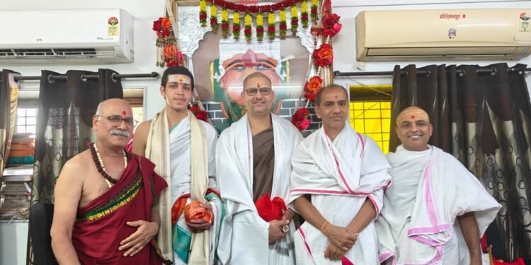 माहूर / नांदेड – जगाच्या इतिहासात तब्बल दोनशे वर्षानंतर पहिल्यांदाच काशीमध्ये अत्यंत कठीण, प्राचीन आणि अनुशासित असे ‘दंडक्रम’ वेदमंत्र पठण पूर्ण करत आपल्या अतुलनीय वेदानुष्ठानामुळे ‘दंडक्रम विक्रमादित्य’ मानाची पदवी प्राप्त करणारे महाराष्ट्राच्या अहिल्यानगर येथील श्रृतिस्मृती ज्ञानमंदिर वेदपाठशाळेचे अवघ्या १९ वर्षाचे छात्र वेदमूर्ती चि. देवव्रत महेशजी रेखे गुरुजी यांनी शनिवारी दिनांक २७ डिसेंबर रोजी सायंकाळी रेणुकादेवी महासंस्थान माहूरगड येथील कुलस्वामिनी श्री रेणुकादेवीचे दर्शन व आपले काशी वाराणसी येथील प्रसिद्ध ऐतिहासिक अद्वितीय असे ‘दंडक्रम पारायण’ श्री रेणुका चरणी समर्पित करण्यासाठी मातेच्या दरबारात हजेरी लावली.
