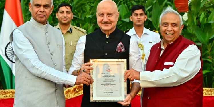 मुंबई – शिमला येथील डीएव्ही पब्लिक स्कूलचे माजी विद्यार्थी असलेले प्रसिद्ध अभिनेते अनुपम खेर यांना शनिवारी राज्यपाल आचार्य देवव्रत यांच्या हस्ते डीएव्ही रत्न पुरस्काराने सन्मानित करण्यात आले.
