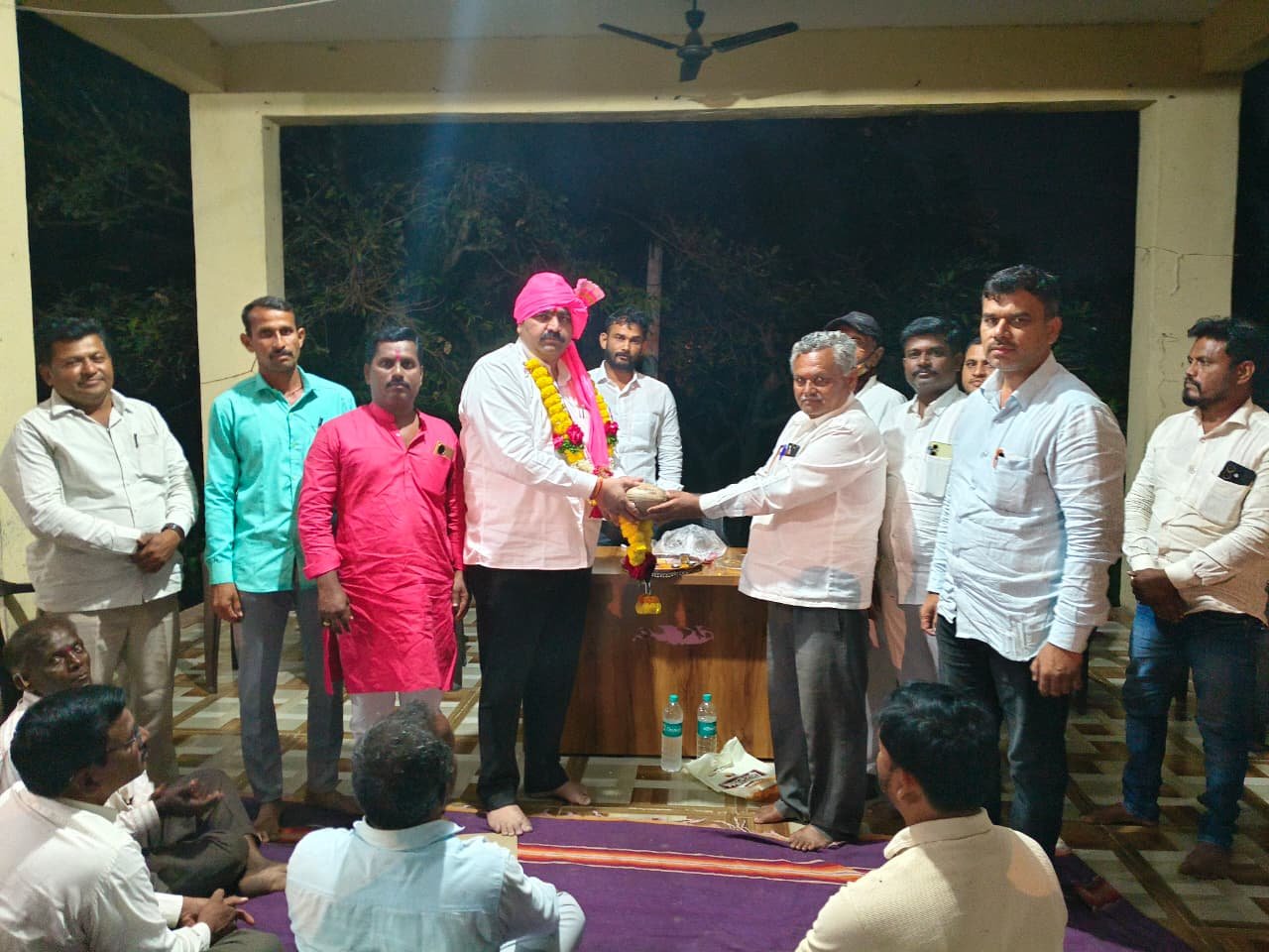यावेळी उपसरपंच लिंबाजी मोरे व संचालक शिवाजी डोके यांच्या हस्ते शिंदे यांचा सत्कार करण्यात आला.