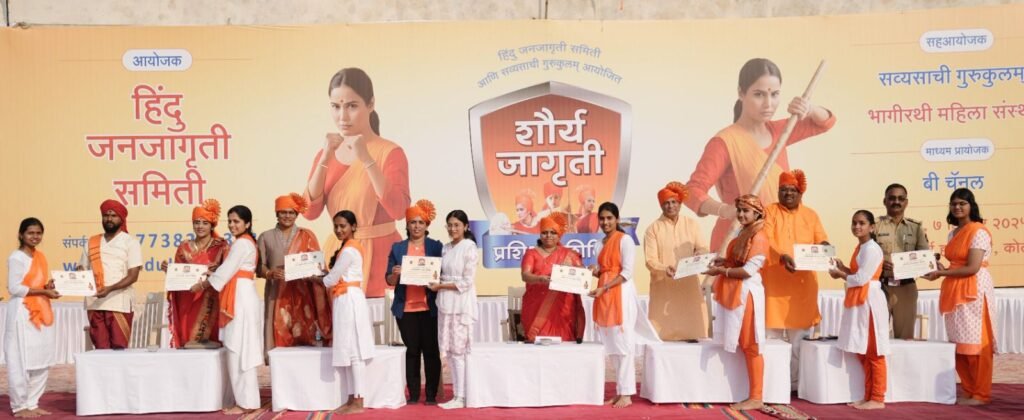 कोल्हापूर – समाजात रस्त्यावर अथवा अन्य कुठेही होणारी छेडछाड, गुंडांकडून होणारा त्रास यांसह कोणत्याही कठीण प्रसंगांना आत्मविश्वासाने तोंड देण्याचा आणि छत्रपती ताराराणींचा आदर्श ठेवत युवतींनी रणरागिणी बनवण्याचा निर्धार केला. हिंदु जनजागृती समिती, सव्यसाची गुरुकुलम् आणि भागीरथी महिला संस्था यांच्या संयुक्त विद्यमाने शिवप्रतापदिनाचे औचित्य साधून ७ डिसेंबर या दिवशी पद्माराजे गर्ल्स हायस्कूल, कोल्हापूर येथे शौर्य जागृती प्रशिक्षण शिबिर आयोजित करण्यात आले होते. त्या शिबिरात हा निर्धार व्यक्त करण्यात आला. या शिबिरात कोल्हापूर, सातारा, सांगली, बेळगाव जिल्ह्यातील एक हजारहून अधिक युवतींनी सहभाग नोंदवला.