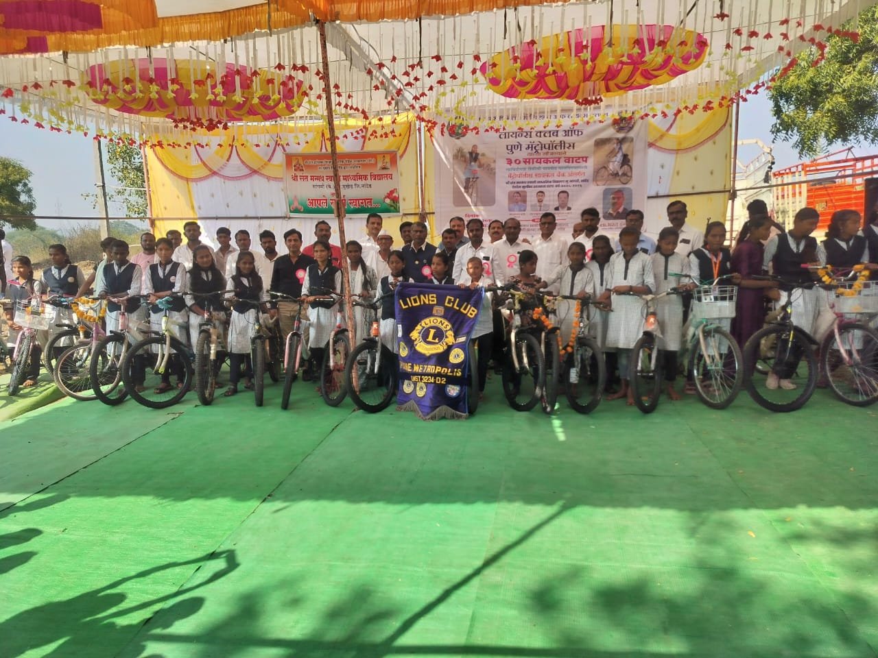 मुखेड – मुखेड तालुक्यातील सांगवी बेनक येथील श्री संत मन्मथ स्वामी माध्यमिक विद्यालयात दि.१ डिसेंबर रोजी सावित्रिच्या लेकींची पायपीट थांबवण्यासाठी बाहेर गावाहून शिक्षणासाठी येणा-या मुलींना सायकलींचे वाटप पुणे येथिल दि इंटरनॅशनल असोसिएशन ऑफ लायन्स क्लब्स मॅट्रोपॉलीस यांच्या वतीने श्री संत मन्मथ स्वामी विद्यालयातील बाहेर गावाहून शिक्षणासाठी ये-जा करणाऱ्या मुलींना मोफत ३० सायकलींचे वाटप