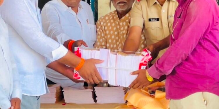 माढा : येथे छत्रपती शिवाजी महाराज आणि स्व. बाळासाहेब ठाकरे यांच्या जयंती निमित्त यशवंत फाउंडेशन या सामाजिक संस्थेच्या वतीने शहरातील जि.प.मुलींची शाळा नं. १, नं.२ व उर्दू या शाळेतील विद्यार्थ्यांना फाउंडेशनचे अध्यक्ष तथा शिवसेना शहर प्रमुख देविदास खरात यांच्या मार्गदर्शनाखाली वह्यांचे वाटप करण्यात आले.