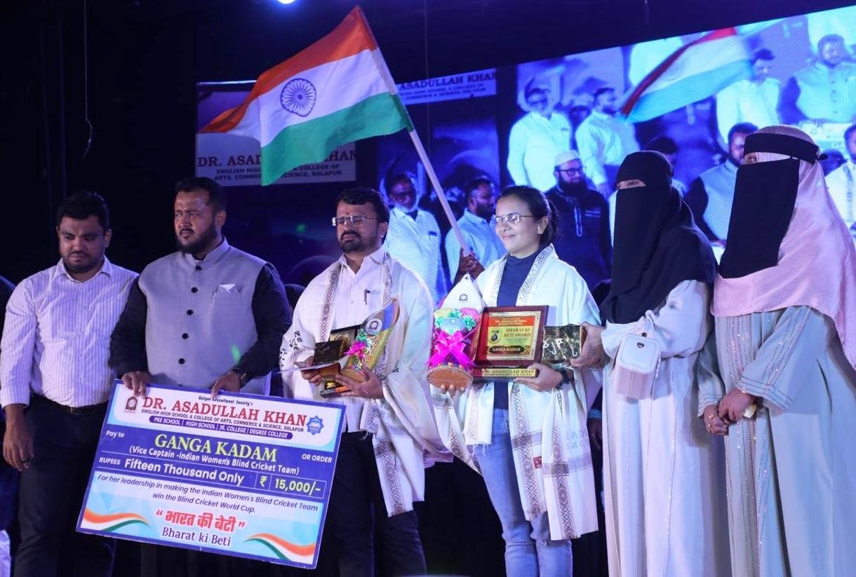 डॉ. असदुल्लाह खान इंग्लिश हायस्कूलच्या ‘उरूज’ महोत्सवात विश्वचषक विजेत्या गंगा कदम यांना ‘भारत की बेटी’ पुरस्कार