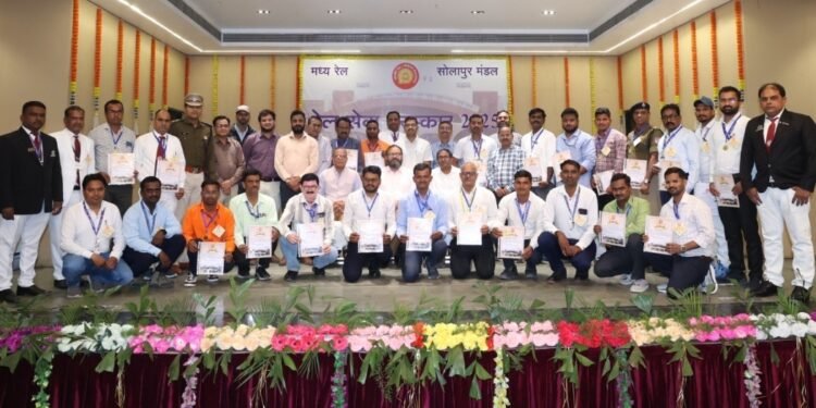सोलापूर – मध्य रेल्वेच्या सोलापूर विभागाने १३ फेब्रुवारी २०२६ रोजी सिद्धेश्वर रेल्वे ऑफिसर्स क्लब ऑडिटोरियम हॉल, सोलापूर येथे ७० वा रेल्वे आठवडा २०२५ कार्यक्रम आयोजित केला होता. या प्रसंगी, सोलापूर विभागातील विभागीय रेल्वे व्यवस्थापक डॉ. सुजीत मिश्रा यांनी रेल्वे कर्मचाऱ्यांच्या योगदानाची दखल घेऊन रेल्वे सेवा पुरस्कार २०२५ प्रदान केला.