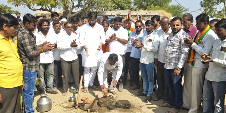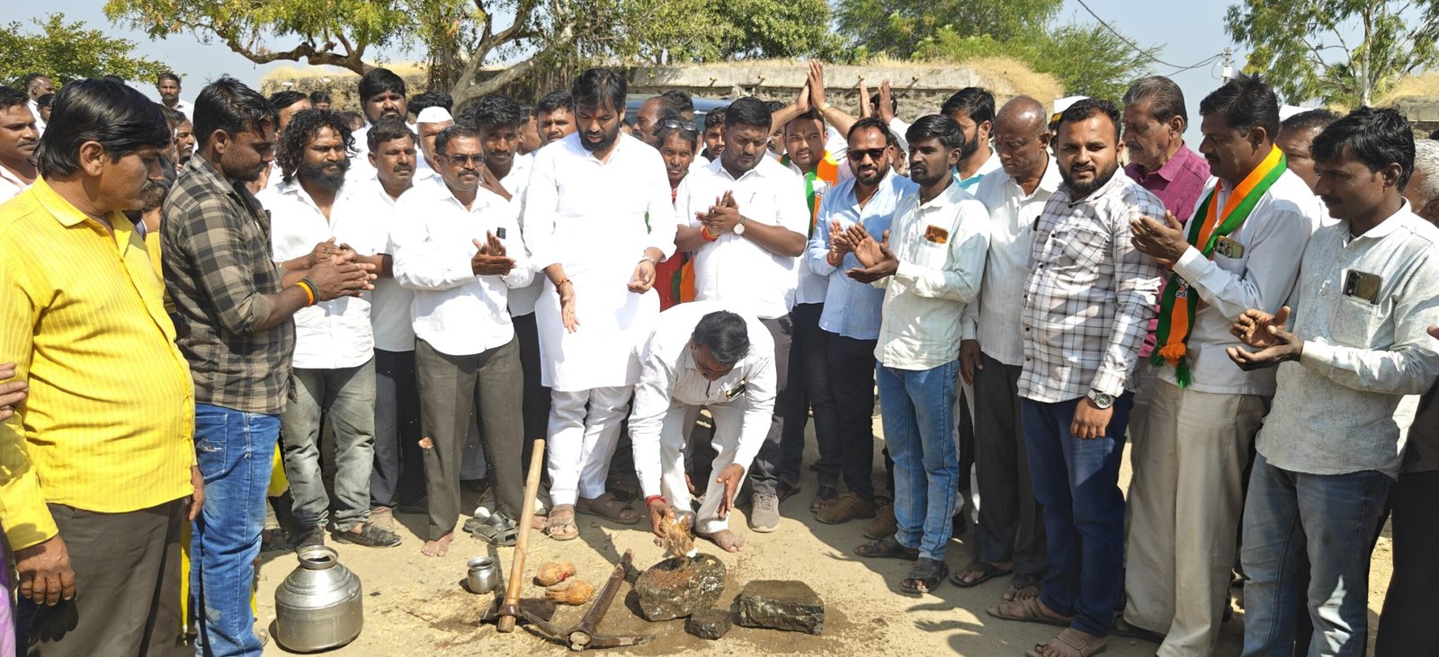 सुळेवाडी इरकरवस्ती येथील रस्त्याचे भूमीपूजन करताना माजी आमदार रामभाऊ सातपुते व इतर मान्यवर.